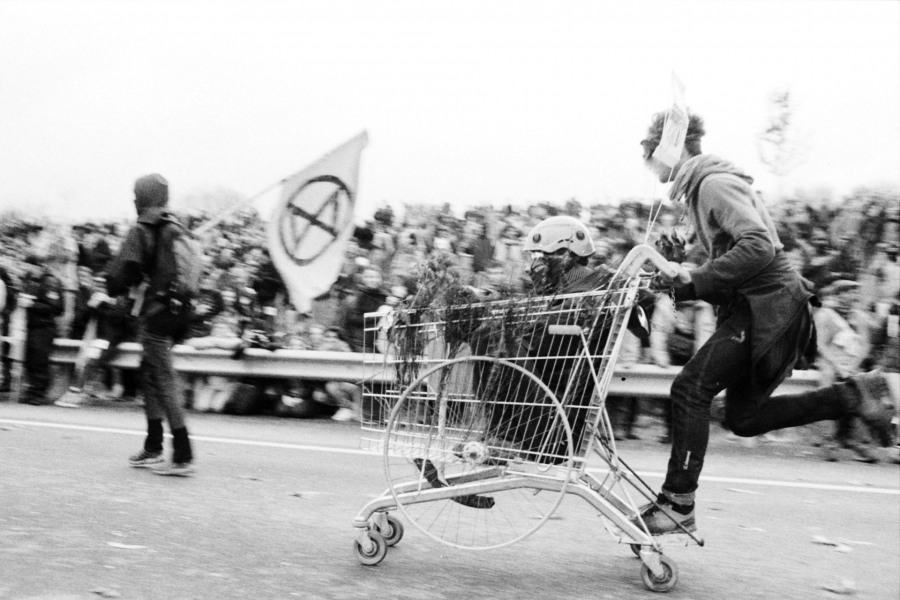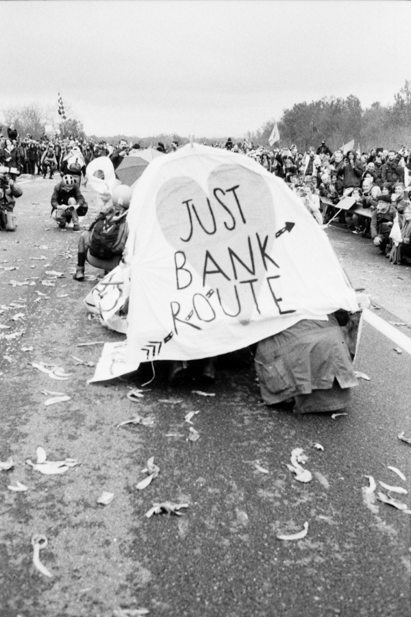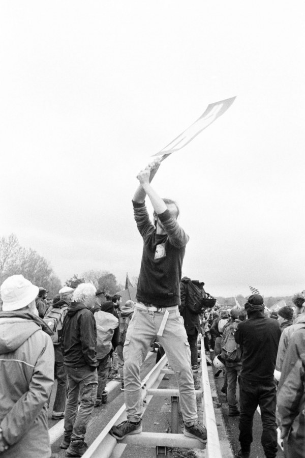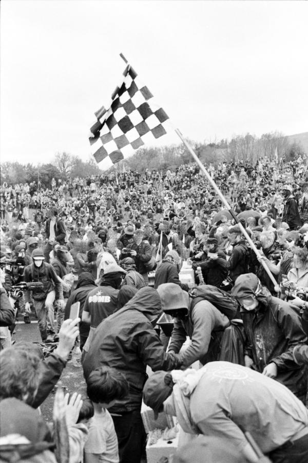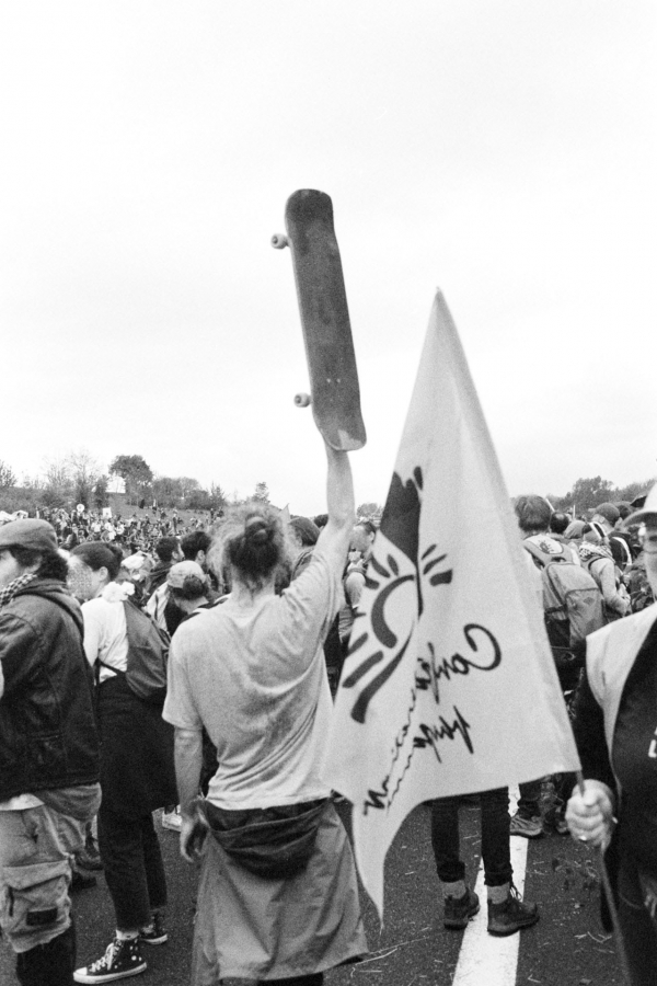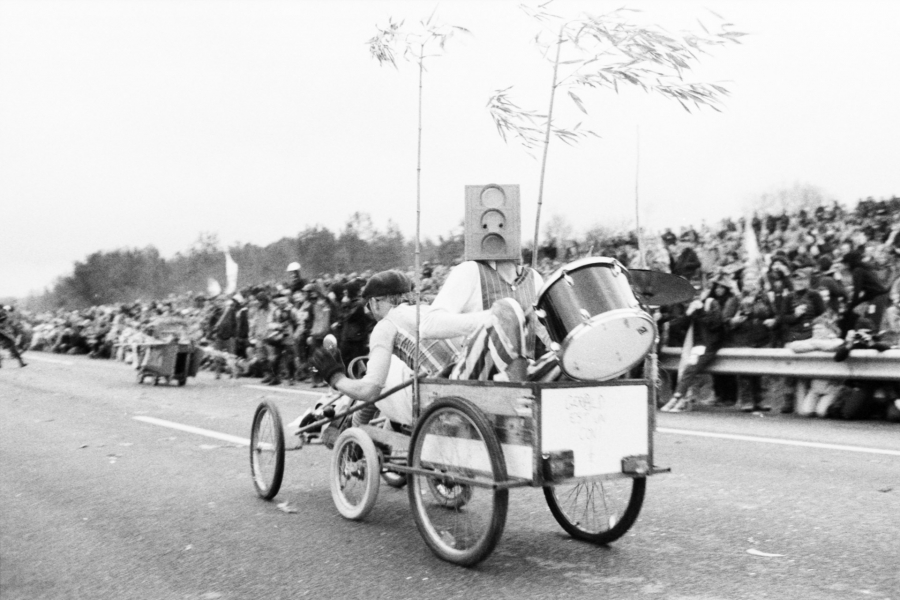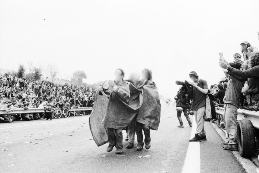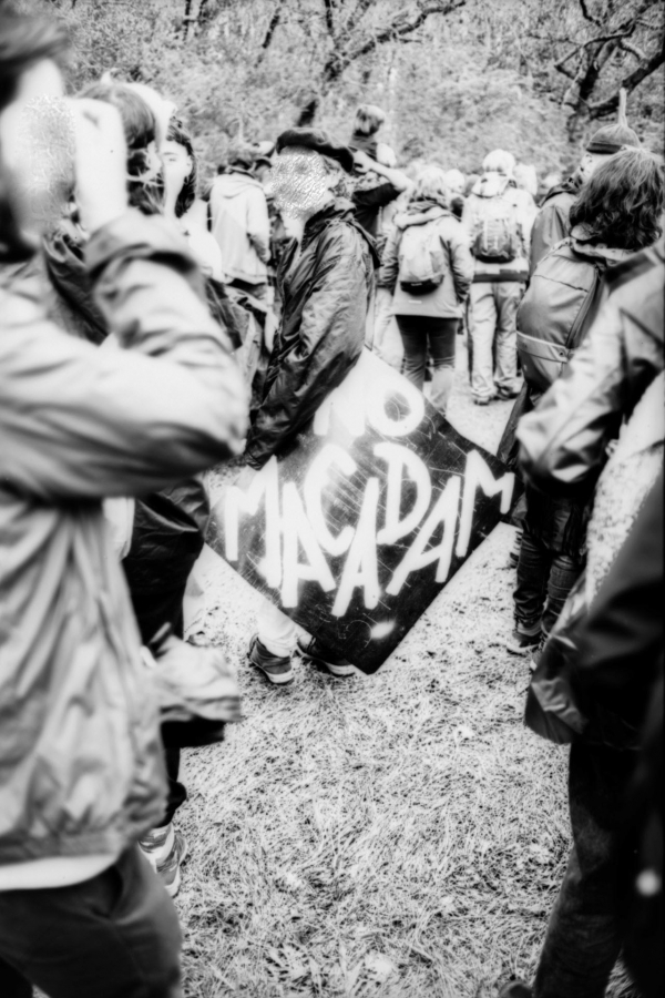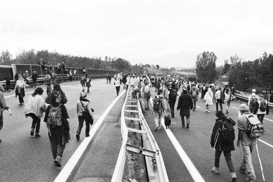 Images issues de la marche sur la nationale N126 dans le Tarn (81) le 22 avril 2023. Mobilisation pour que l'autoroute A69 entre Castres et Toulouse ne voit jamais le jour, ponctuée par une course de bolides fabriqués par les manifestant.es.