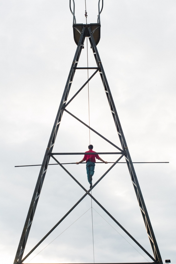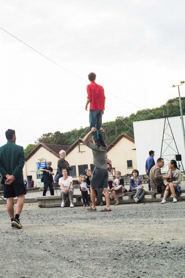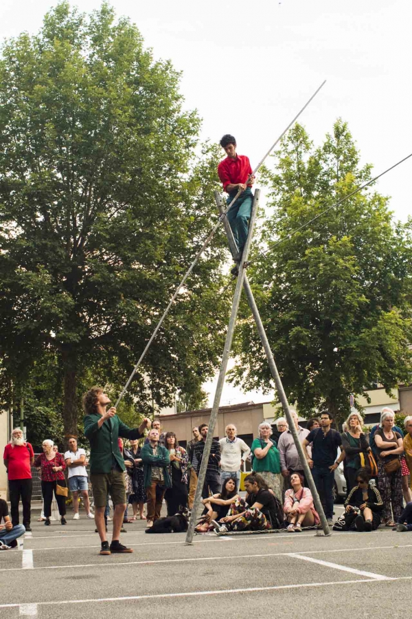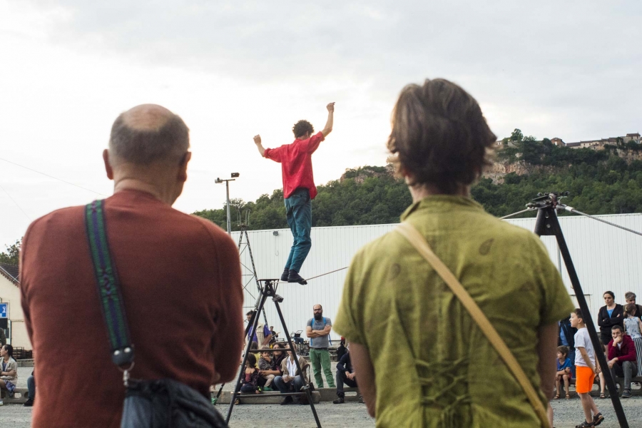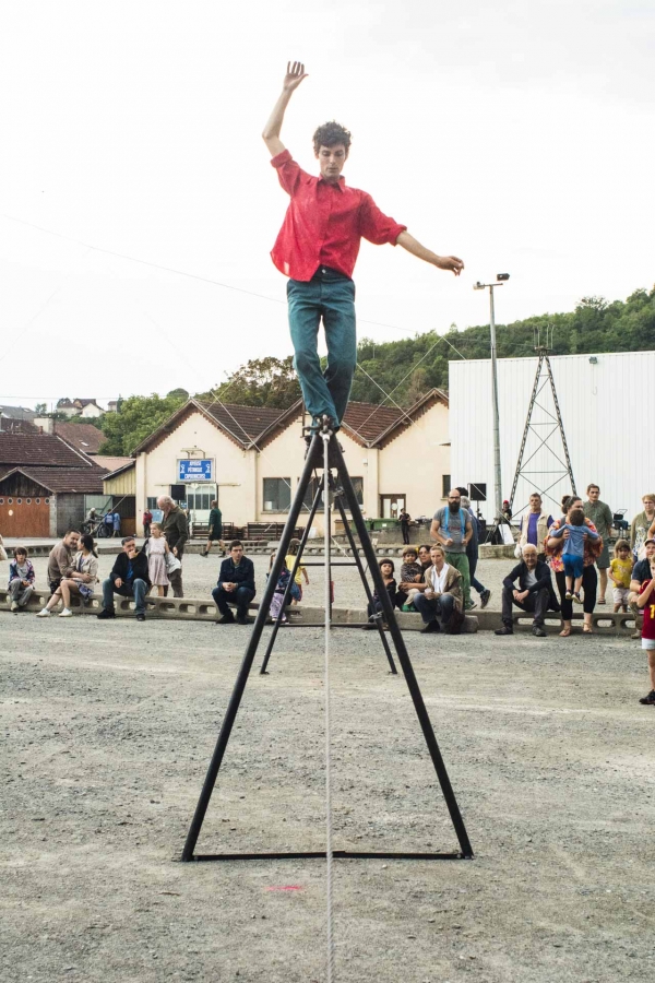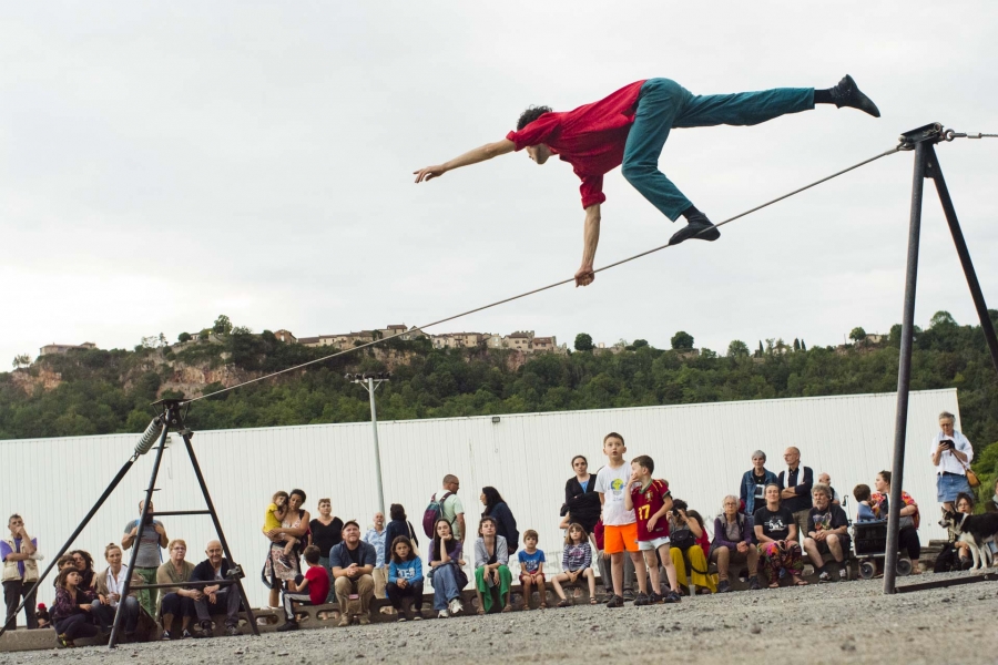 Spectacle de funambulisme "Vif" du cirque des petites natures à Capdenac (12) ayant eu lieu le dimanche 05 juin 2023 dans le cadre de Point de fuite une sorte de festival organisé par Derrière le hublot scène conventionnée d’intérêt national - art en territoire.