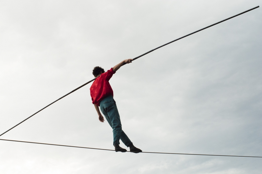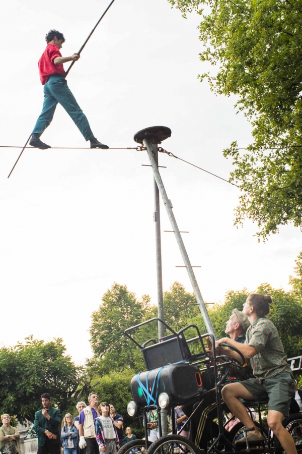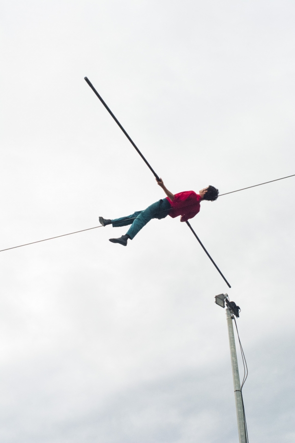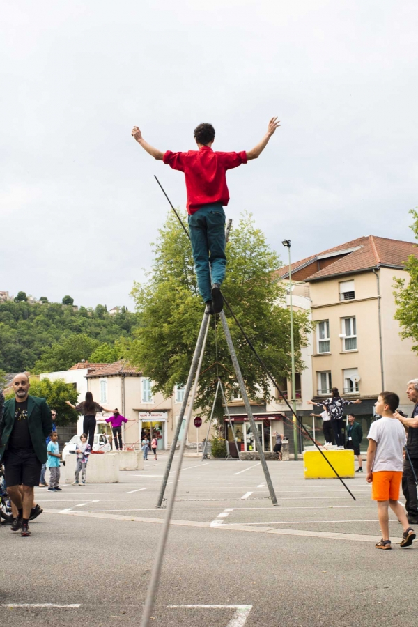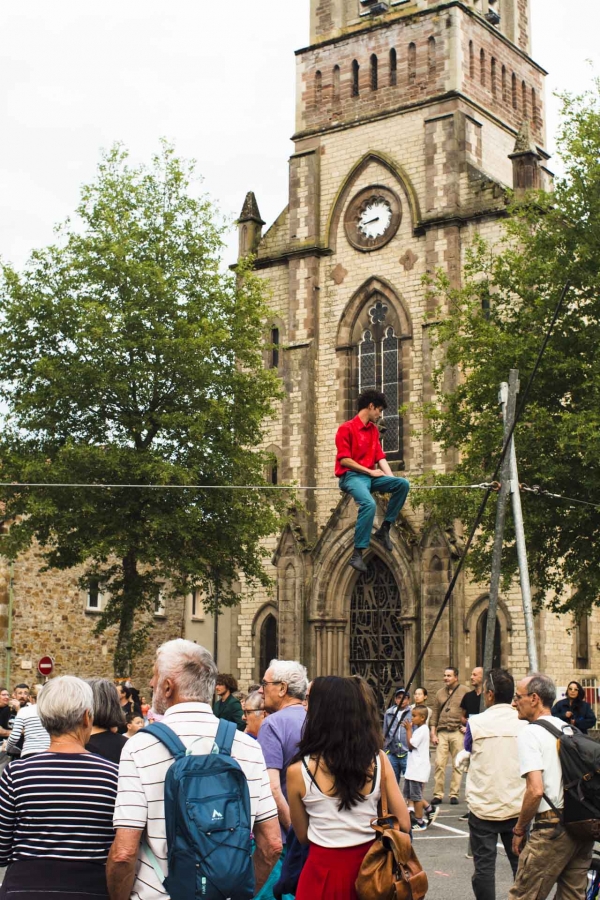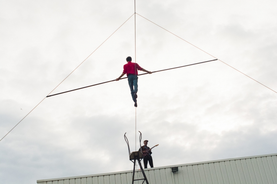 Spectacle de funambulisme "Vif" du cirque des petites natures à Capdenac (12) ayant eu lieu le dimanche 05 juin 2023 dans le cadre de Point de fuite une sorte de festival organisé par Derrière le hublot scène conventionnée d’intérêt national - art en territoire.